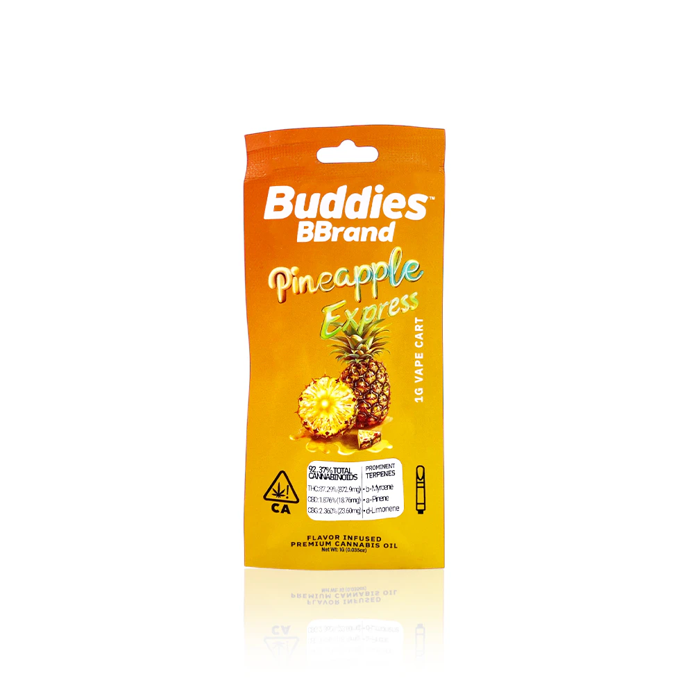 Experience the tantalizing blend of tropical pineapple and zesty citrus flavors with BUDDIES - Cartridge - Pineapple Express - BBrand - 1G, a premium cannabis vape cartridge from Tropicanna Dispensary & Weed Delivery. This cartridge is meticulously crafted using the CCELL 510 Vape Cartridge technology, ensuring a smooth and consistent vaping experience. Distilled cannabis oil infused with cannabis-derived terpenes captures the strain-specific aroma and flavor profiles of the legendary Pineapple Express strain. Tropicanna's patent-pending process reintroduces 100% cannabis-derived terpenes, allowing you to savor the authentic taste and potency of the flower it originated from. With Tropicanna's convenient storefront located in Santa Ana, CA, and delivery services available in nearby cities like Tustin, Irvine, Orange, Costa Mesa, and Fountain Valley, indulging in the tropical delight of Pineapple Express has never been easier. Elevate your cannabis experience with the exceptional quality and flavor of BUDDIES - Cartridge - Pineapple Express - BBrand - 1G from Tropicanna Dispensary & Weed Delivery.