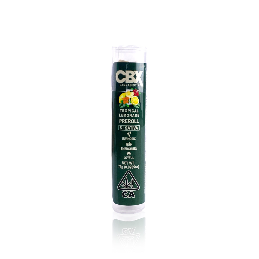Tropicanna Dispensary & Weed Delivery, proudly serving Santa Ana, CA, and the surrounding areas of Tustin, Irvine, Orange, Costa Mesa, and Fountain Valley, is excited to offer CBX - Preroll - Tropical Lemonade - .75G. This extraordinary pre-roll is the result of a unique cross between two award-winning CBX sativas: Strawberry Lemonade and Tropicanna. The perfect companion for embracing the vibrant Cali lifestyle, this strain boasts an intoxicating aroma of funky fruit that will tantalize your senses.