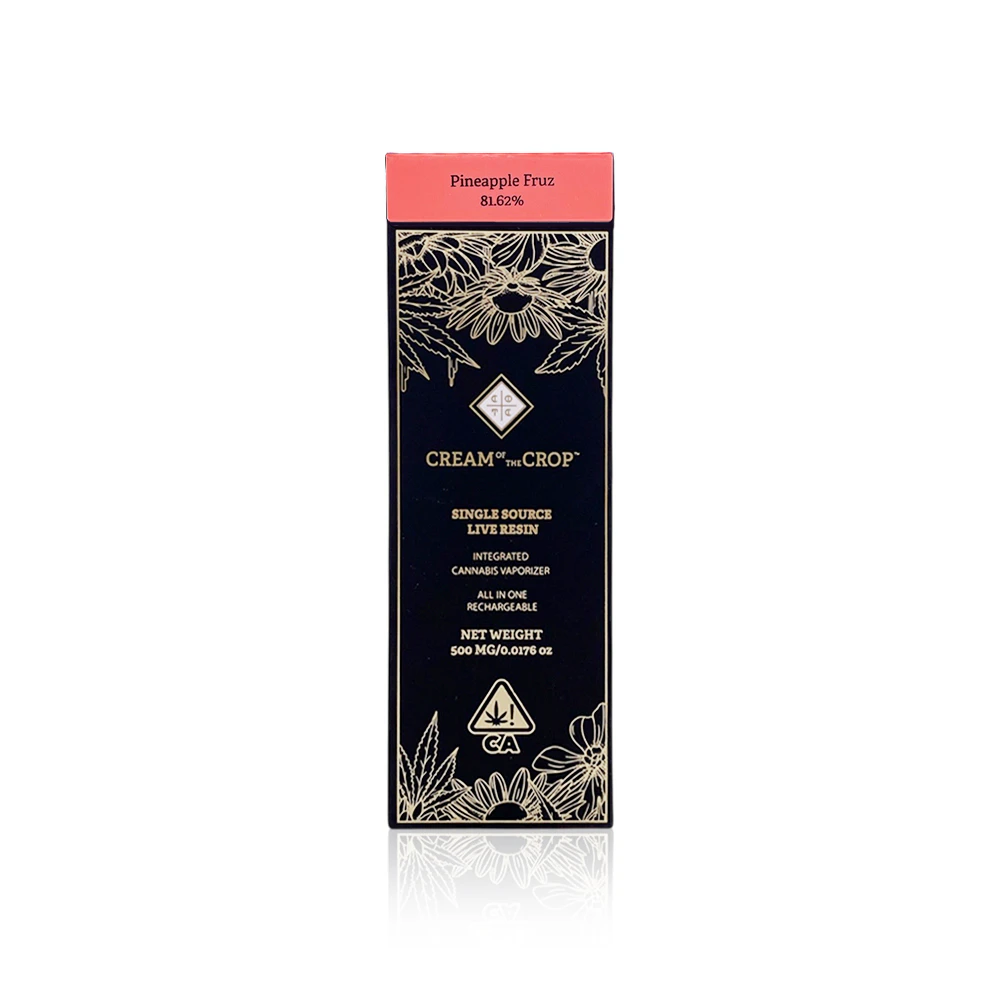 Experience premium convenience with CREAM OF THE CROP's All In One Pineapple Fruz vape pen, now available at Tropicanna Dispensary & Weed Delivery. This exceptional .5G disposable device delivers the tropical essence of fresh pineapple with expertly crafted cannabis concentrates, providing an unparalleled vaping experience for discerning cannabis enthusiasts.