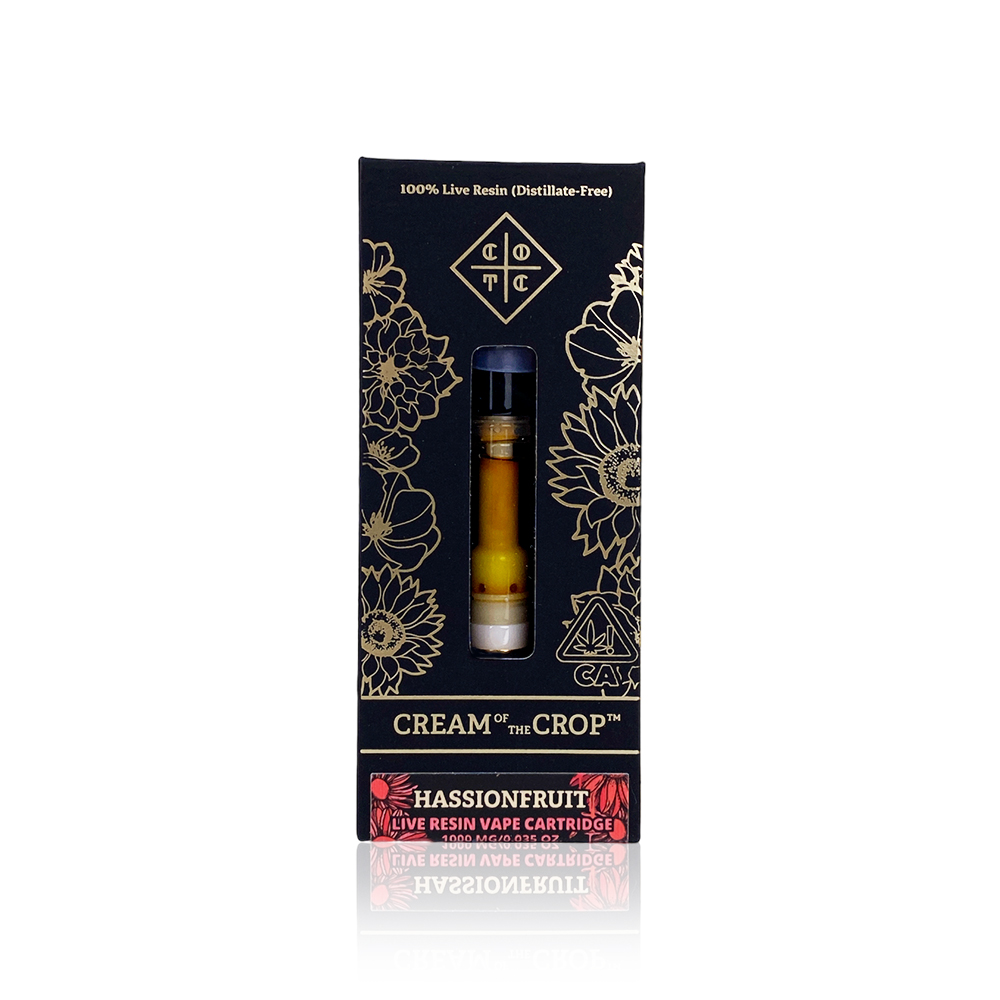 As unique as its name, Hassionfruit has quite the lineage; Platinum Cookies crossed with GDP, then crossed with Blue Power and Gelatti. This sativa leaning strain has a spicy, piney flavor and aroma with an earthy smooth exhale. Thanks to the high amounts of myrcene, pinene, and caryophyllene, Hassionfruit has a focused high with muscle relaxing properties. An excellent strain to puff on while studying for your exams. The COTC Signature Cartridge features a ceramic core with no burn technology and a borosilicate glass body filled with 100% Live Resin Oil, no distillate, from our award winning genetics.