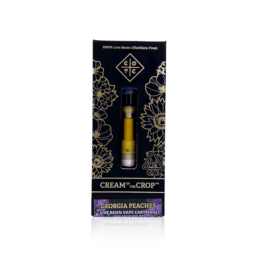 Experience the essence of summer with Georgia Peaches, a premium indica-dominant cartridge from CREAM OF THE CROP. This 1G vape cartridge combines the best of Gelatti and Kush Mints, delivering a delightful citrus, sweet, and earthy flavor profile that will transport you to a sun-drenched orchard. Perfect for unwinding on warm evenings, Georgia Peaches offers a blissful balance of uplifting spirits, stress relief, and full-body comfort.