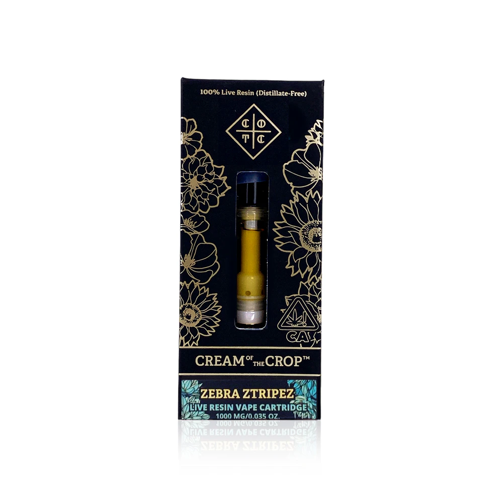 Experience the exceptional quality of CREAM OF THE CROP's Zebra Ztripez 1G Vape Pen, available exclusively at Tropicanna Dispensary in Santa Ana, CA. This premium vaporizer combines sophisticated hardware with high-potency cannabis oil, delivering a smooth and flavorful experience with every draw. The Zebra Ztripez strain offers a unique blend of sweet and earthy notes, creating an enticing aroma that cannabis enthusiasts will appreciate.