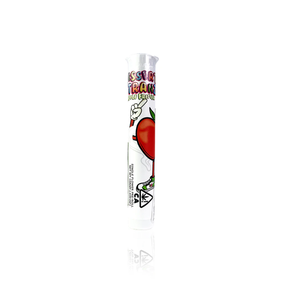 DESSERT STRANZ is renowned for its artful blending of unique strains, and this Apple Fritter preroll is no exception. A delightful synergy of soothing relaxation and cerebral stimulation, the soothing aroma of freshly baked apples swirled with a hint of sweetness offers a serene escape that's hard to resist. This premium 1 gram preroll provides a slow burn and even draw, delivering an unparalleled smoking experience.