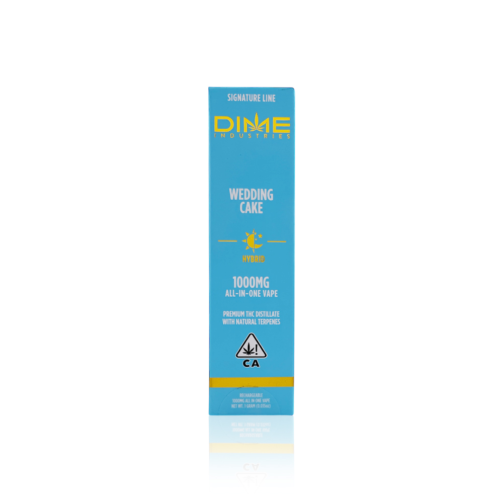 The 1000MG capacity ensures long-lasting enjoyment, while the sleek design makes it ideal for on-the-go use. DIME INDUSTRIES is known for their commitment to quality and purity, using state-of-the-art extraction methods to preserve the plant's natural terpenes and cannabinoids. This results in a smooth, flavorful experience that accurately represents the Wedding Cake strain's unique profile.