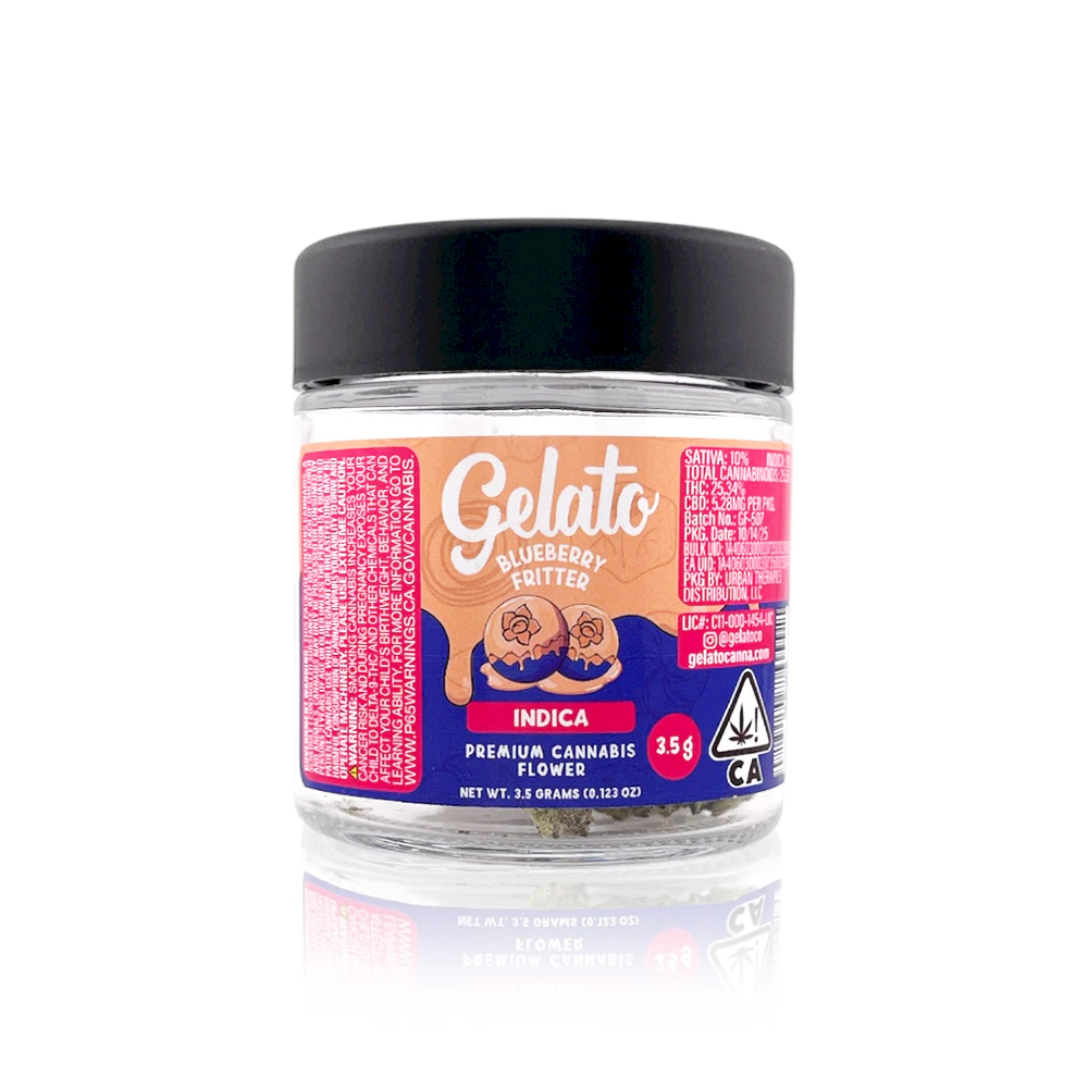 GELATO - Blueberry Fritter combines the beloved genetics of Gelato with delicious blueberry notes, creating a smooth smoking experience with flavors of vanilla, berry, and subtle earthiness. Users can expect a balanced high that begins with uplifting cerebral effects before transitioning into a relaxing body sensation, making it ideal for evening use or unwinding after a long day.