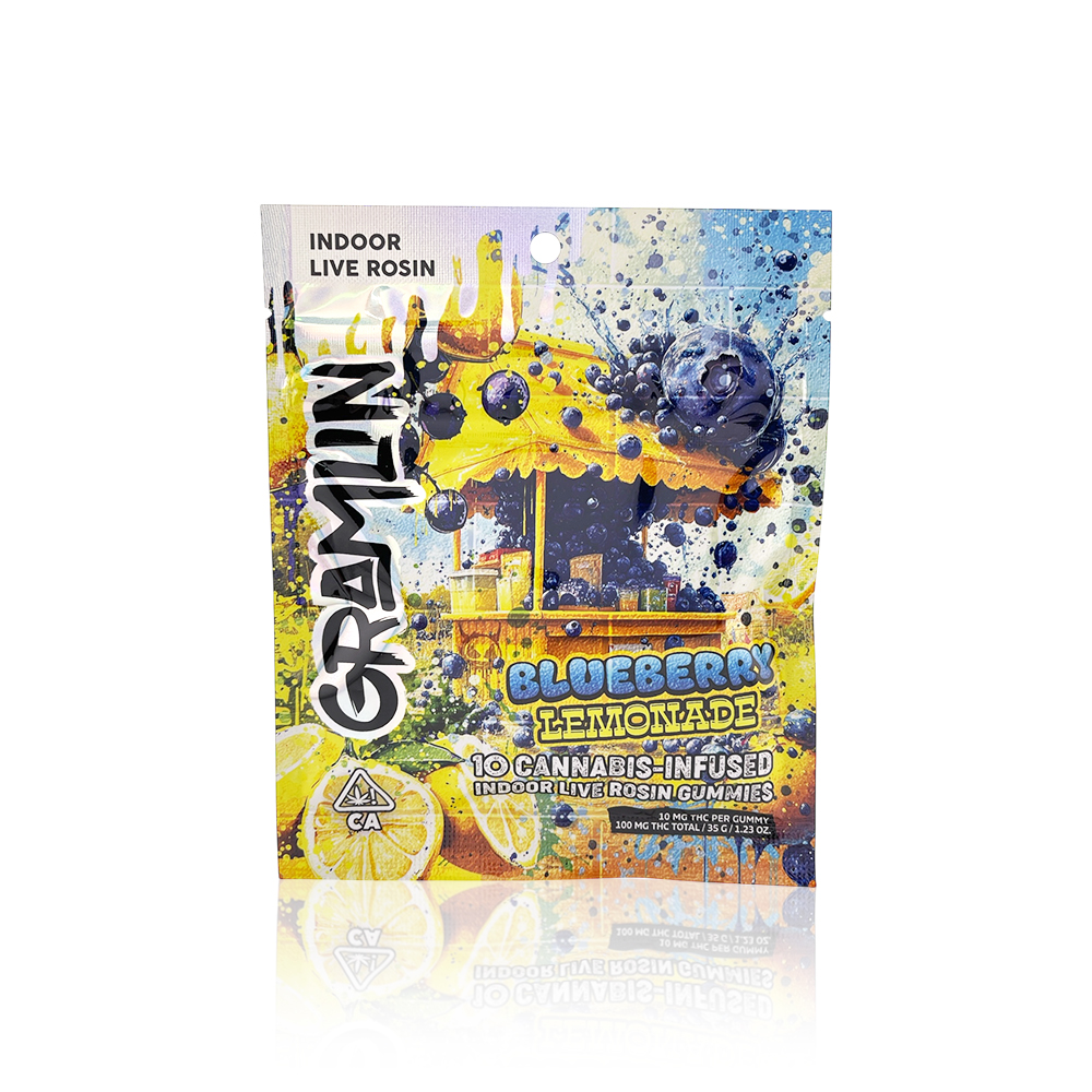 Experience the perfect fusion of flavor and potency with GRAMLIN's Blueberry Lemonade Live Rosin Gummies, now available at Tropicanna Dispensary's Santa Ana storefront and through our convenient marijuana delivery service throughout Orange County. These premium 100MG edibles represent the pinnacle of cannabis craftsmanship, combining the refreshing taste of summer blueberries with zesty lemonade in every bite.