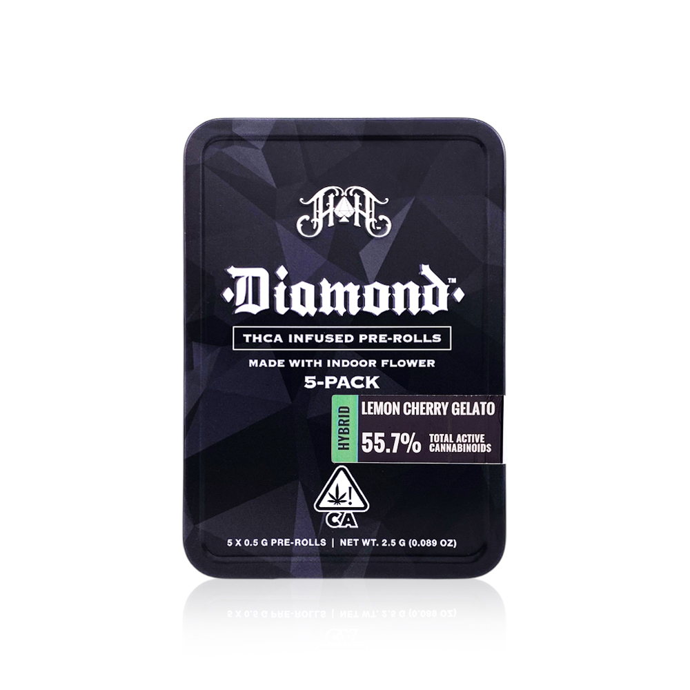 Experience the pinnacle of pre-rolled excellence with Heavy Hitters' Infused Diamond Pre-rolls, featuring the mouthwatering Lemon Cherry Gelato strain. This premium 5-pack contains 2.5G of expertly crafted cannabis, enhanced with pure THCA diamonds for an unparalleled smoking experience. Each pre-roll is meticulously infused to deliver consistent potency and smooth hits, perfect for cannabis enthusiasts seeking elevated effects.