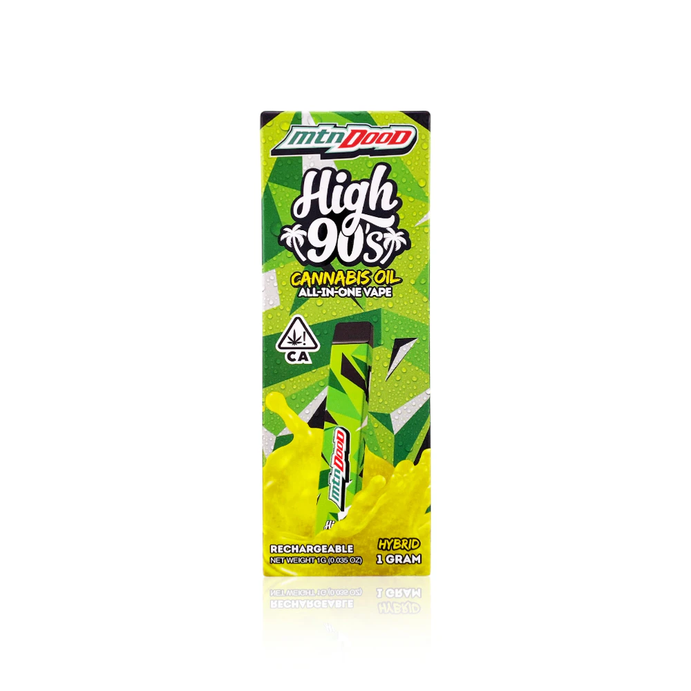 Experience the ultimate convenience and nostalgic flavor with HIGH 90'S All in One Mtn. Dood, available at Tropicanna Dispensary's Santa Ana storefront and through their reliable delivery service across Orange County. This premium 1-gram device combines the beloved taste of a classic mountain dew-inspired beverage with top-tier cannabis distillate, creating an unforgettable vaping experience.