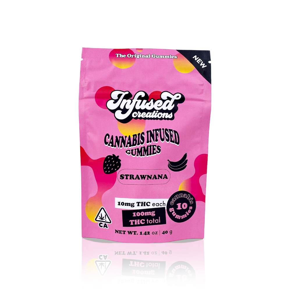 Renowned as a Recreational Cannabis Dispensary in Santa Ana, Anaheim, and surrounding areas, our edibles are made to impress even the most discerning cannabis connoisseur. When you purchase the INFUSED CREATIONS - Edible - Strawnana - Gummies - 100MG, you are investing in more than a product - you are joining in a lifestyle that prioritizes leisure and enjoyment. Try these gummies today for an exceptional taste experience you won't forget!