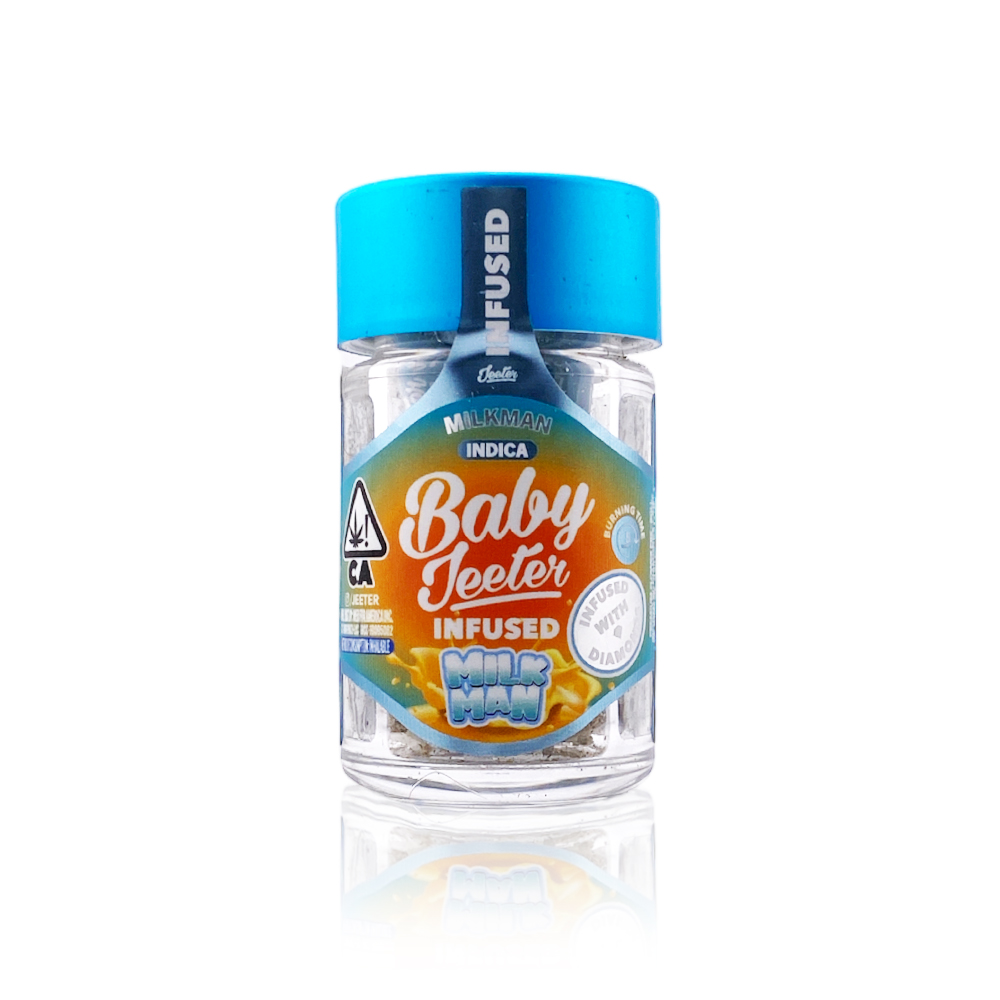 Crafted with meticulous attention to detail, each BABY JEETER preroll is expertly rolled with a proprietary blend of top-shelf flower and infused with the tantalizing Liquid Diamonds concentrate. This fusion creates a smooth, flavorful smoke that delivers a potent and long-lasting high. The Milk Man strain, known for its creamy, dessert-like aroma and balanced effects, provides a delightful and indulgent experience.