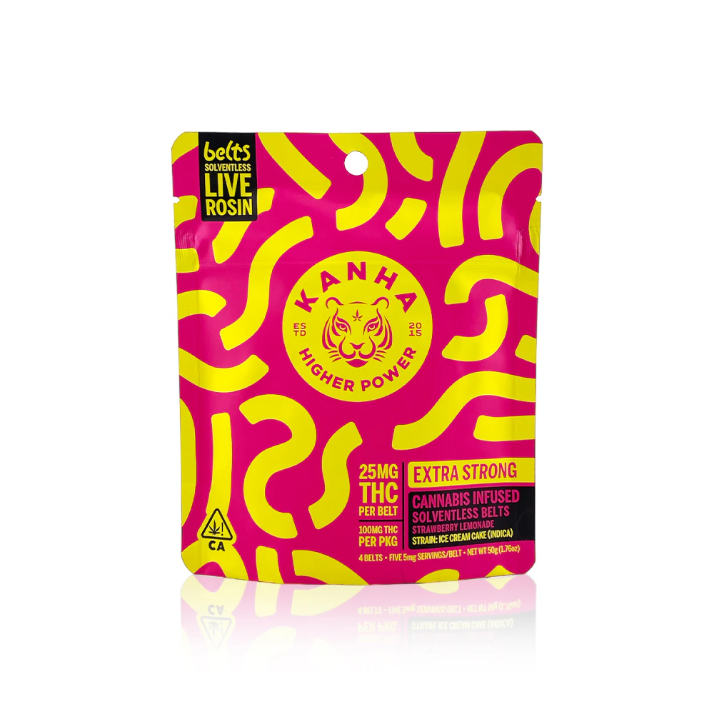 Relax and unwind with our NANO Strawberry Lemonade Belts, a bold Indica blend for the kick back connoisseurs. Enhanced with Ice Cream Cake solventless live rosin for deep relaxation and euphoria. These delectable edibles offer a premium cannabis experience, combining the refreshing taste of strawberry lemonade with the potent effects of live rosin. Each package contains 100mg of THC, allowing for precise dosing and a customizable high. Crafted using a solventless extraction process, these belts preserve the full spectrum of cannabinoids and terpenes, ensuring a pure and flavorful product.
