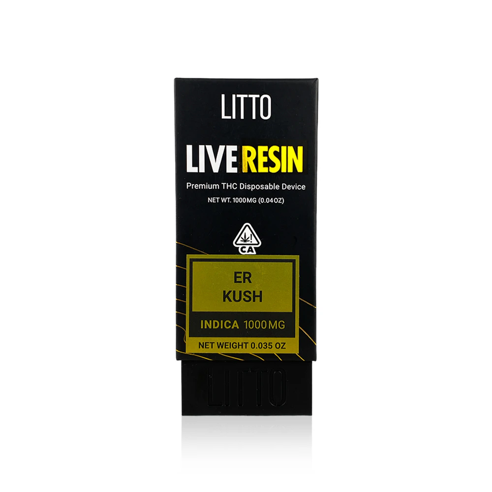 ER Kush, an aromatic Indica strain, is part of LITTO's Live Resin collection. This strain is an ideal Indica because it boasts an incredible flavor profile with every pull. Because of this strain's Indica properties, it's best to grab ER Kush and head out into the night for an evening sesh. Some individuals might notice that their eyelids feel heavy before suddenly setting off in search of comfy clothes. Thanks to the effects of E.R. Kush, it’s recommended to grab this strain in the evening, or when individuals are looking to lounge in their space for an extended period of time. Complex flavor profile that reflects the distinct smell, and taste, of the great outdoors with notes of crisp citrus mixed in. From the start of this strain's use, individuals can smell the woody flavors with every exhale as the comforting aroma fills the space.