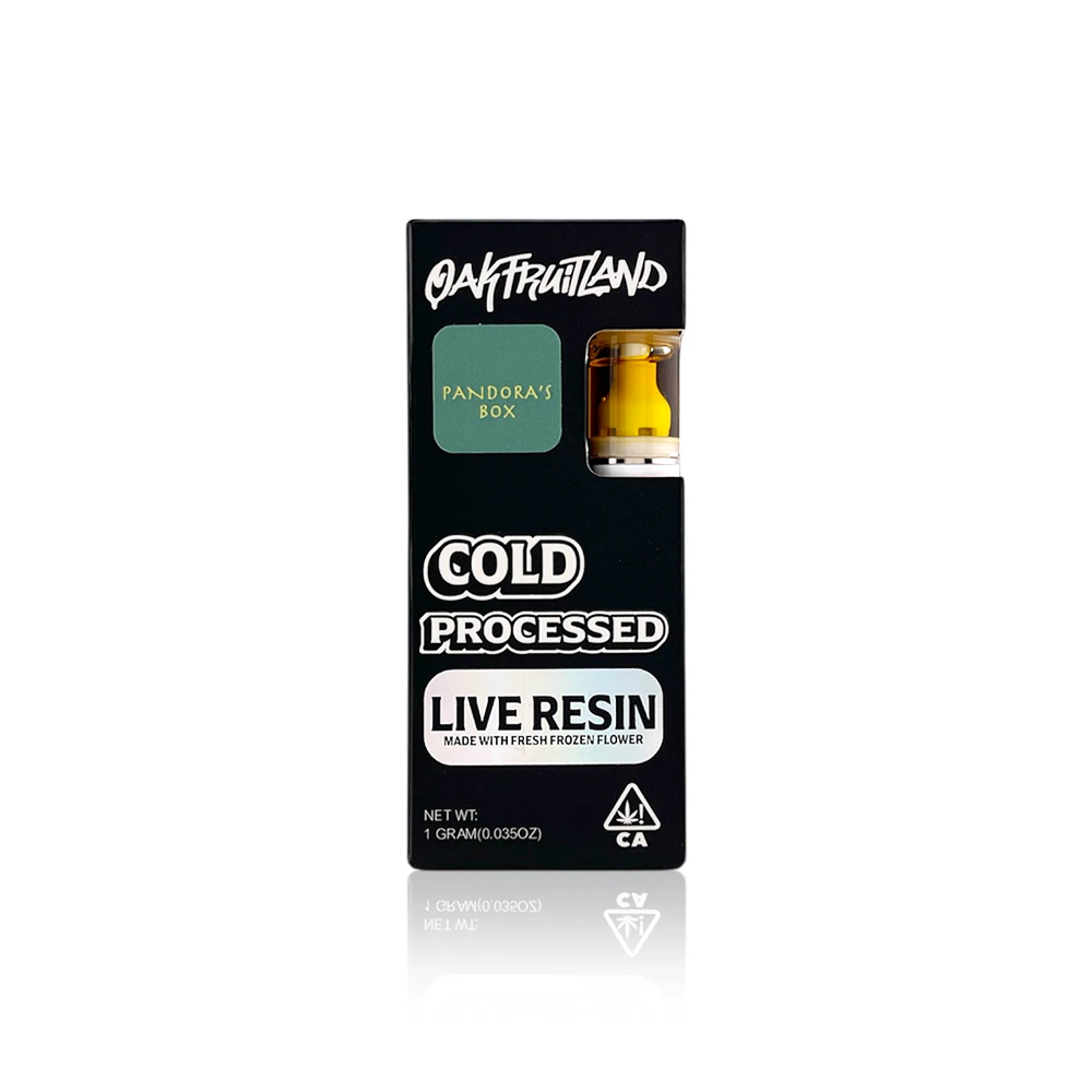 Crafted using OAKFRUITLAND's proprietary cold processing technique, this live resin captures the full spectrum of cannabinoids and terpenes from freshly harvested cannabis plants. The result is an incredibly pure and potent extract that maintains the strain's original flavor profile and therapeutic benefits. Pandora's Box offers a harmonious blend of sweet and earthy notes, creating an aromatic experience that perfectly complements its balanced effects.