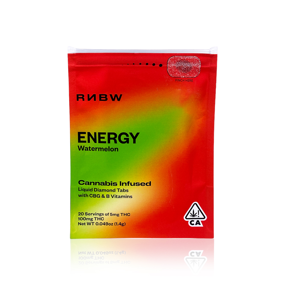 Introducing RNBW - Edible - Energy - Diamond THC Tab - 20-Pack - 100MG, an innovative product from Tropicanna Dispensary & Weed Delivery. Savor a lively blend of rainbow hues and cannabis-infused power provided by our energy-charged THC Diamond Edibles. Each THC Tab contains a potent 5MG dose, making it easy to regulate your intake.