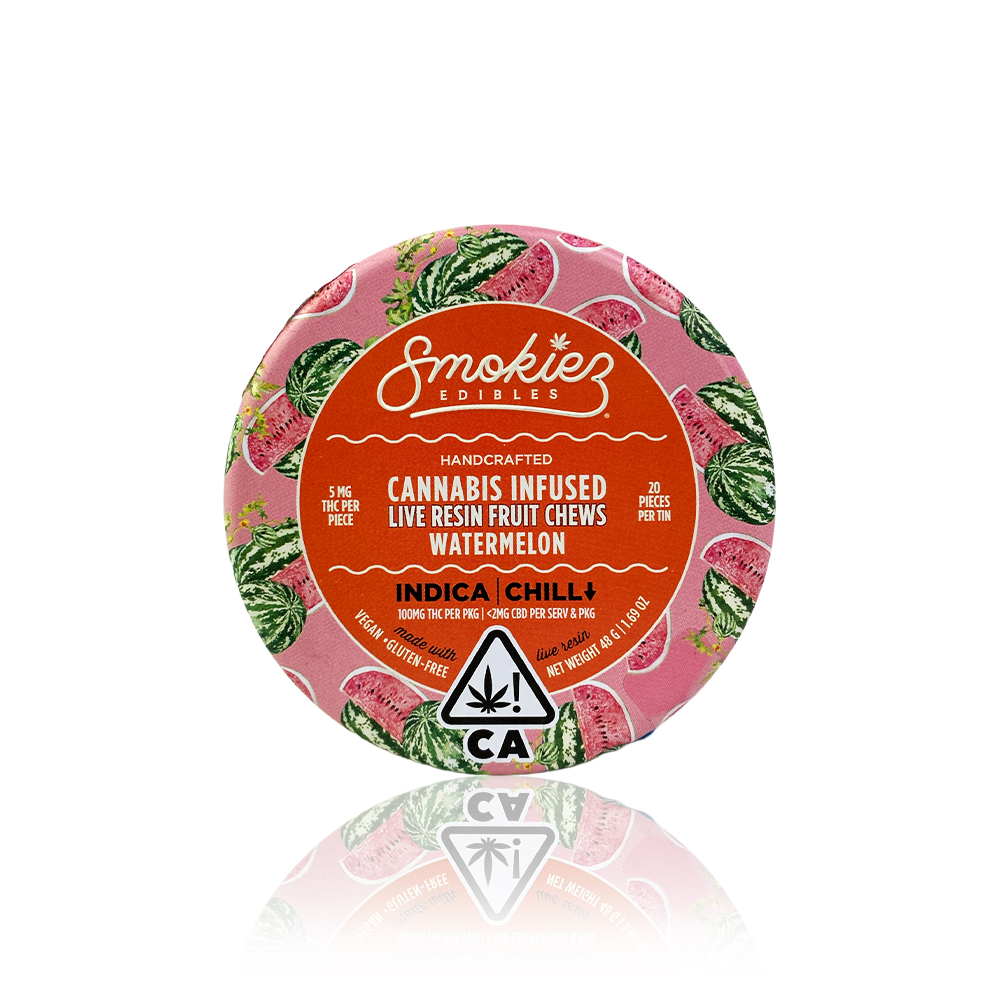 Tropicanna Dispensary & Weed Delivery is proud to present SMOKIEZ Edible - Watermelon - Live Resin - Fruit Chews. With a delectable watermelon flavor, these 100mg THC fruit chews provide a potent and consistent experience, formulated with live resin to ensure the preservation of cannabinoids and terpenes gems. They are perfect for recreational cannabis users in Orange, CA & Irvine, CA, looking for a refreshing, mouthwatering, and enjoyable edible experience.