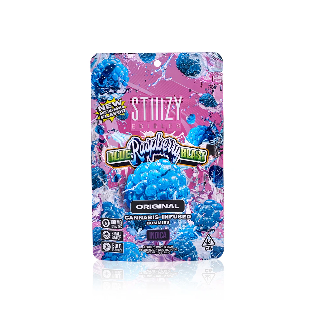 Experience a burst of refreshing relaxation with STIIIZY's Blue Raspberry Blast edibles, one of our most flavorful offerings. Nestled in our Santa Ana, CA storefront, we showcase these abundantly fruity bites crafted faithfully to invigorate the palette and the mind. A tantalizing blend of bold, upbeat raspberry essences intertwined with a tranquilizing Indica tang, the taste will transport you on a journey to the summer fields brimming with juicy, ripe berries.