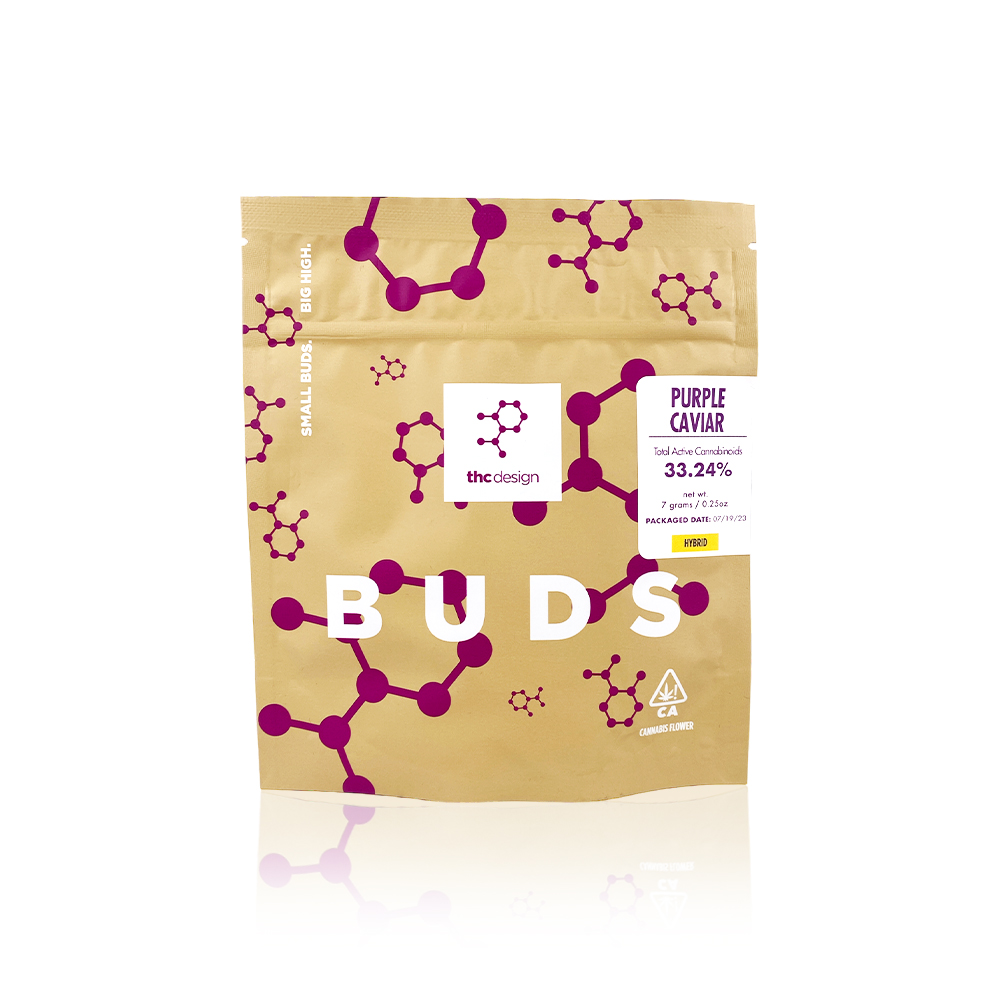 Discover a luxurious cannabis experience that stands out from the rest with Tropicanna Dispensary & Weed Delivery's premium product - THC DESIGN Purple Caviar. This flower was designed with connoisseurs in mind, boasting a remarkable blend of potent THC and exquisite aromas that are perfect for any time of the day. Each pouch contains a generous 7g of Purple Caviar, renowned for its sustained, mellow highs and distinct, fruity notes.