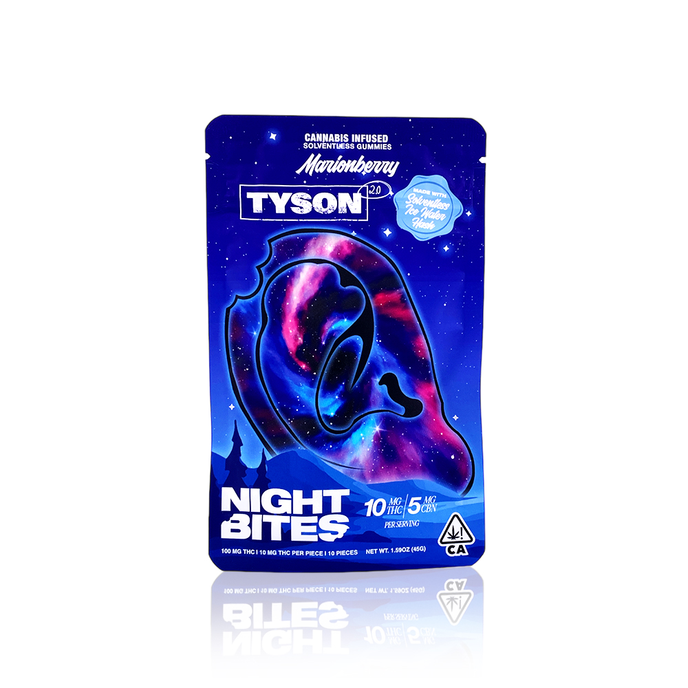Dive into the tantalizing world of cannabis-infused edibles with TYSON 2.0's Marionberry Night Bites - 100MG. Savor the superior taste and quality that has our customers seeking our Marijuana delivery in Orange, CA, and Irvine, CA. Each bite is infused with ripe, juicy marionberries and packed with a potent 100MG dosage, ensuring a satisfying and lasting experience that you can comfortably integrate into your nightly routine.